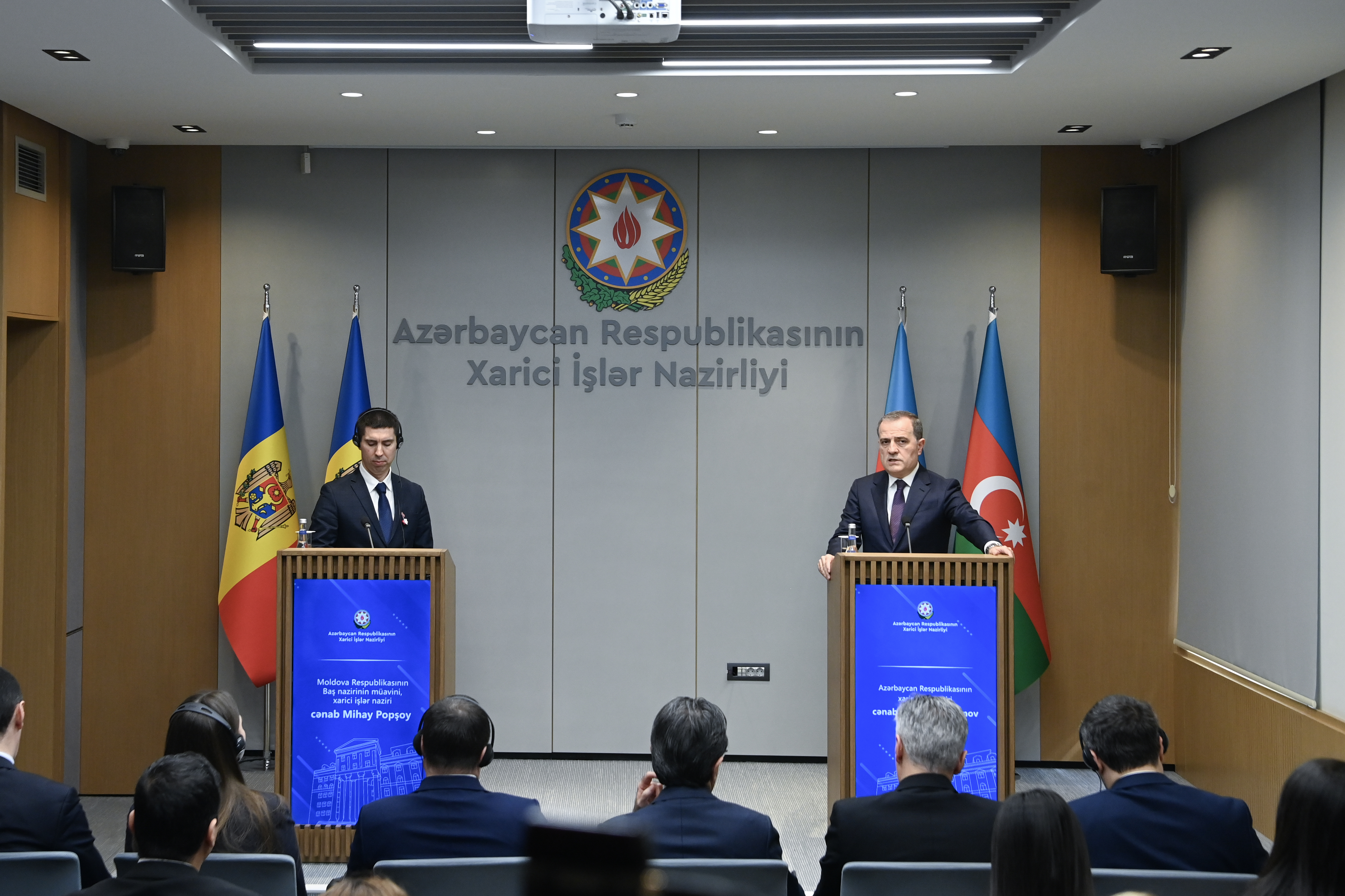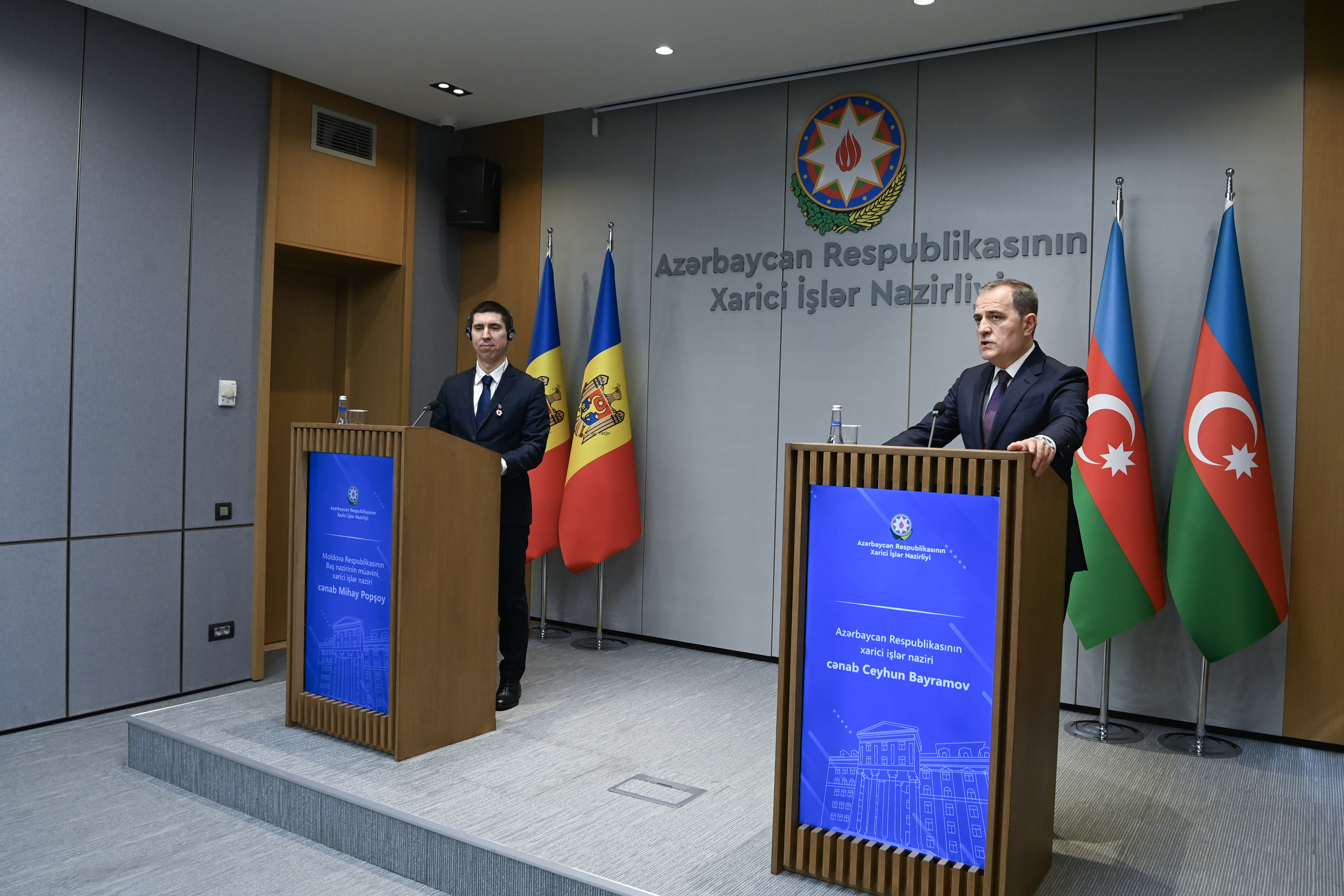 The meeting began with a tête-à-tête session between Minister Jeyhun Bayramov and Minister Mihai Popșoi and was subsequently continued in an expanded format with the participation of delegations from both sides.