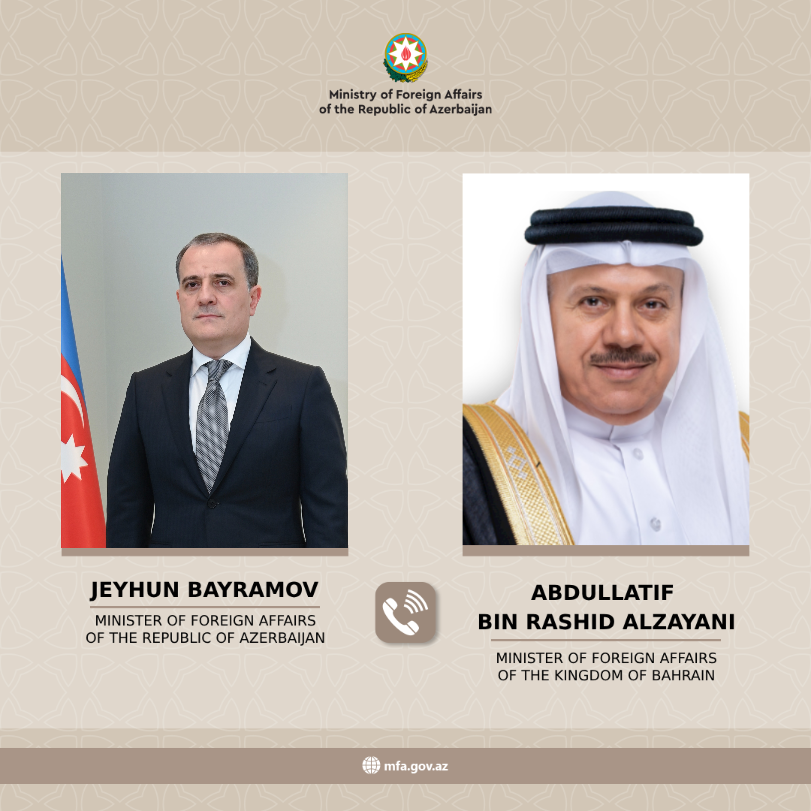 No:065/26, Press release on the telephone conversation between Minister Jeyhun Bayramov and the Minister of Foreign Affairs of the Kingdom of Bahrain, Abdullatif bin Rashid al-Zayani