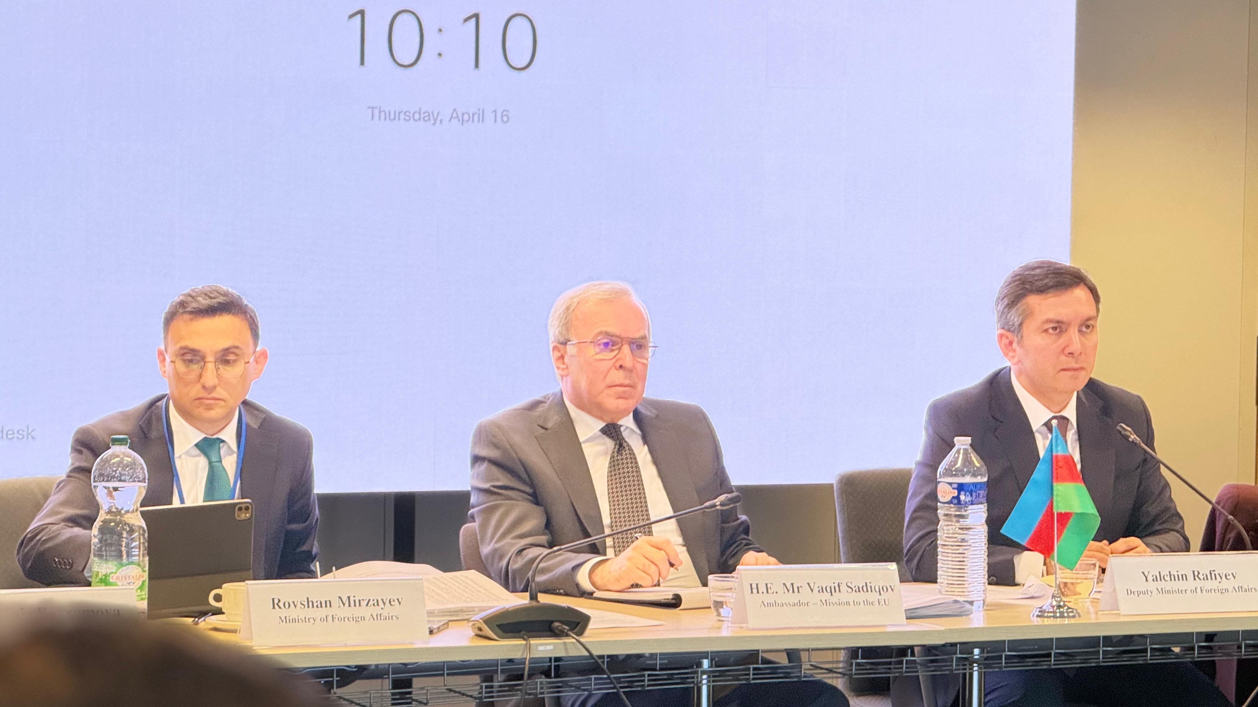 The Azerbaijani delegation was headed by Deputy Minister of Foreign Affairs Yalchin Rafiyev, and the European Union side was headed by Deputy Managing Director of the European External Action Service Audrone Perkauskiene.
