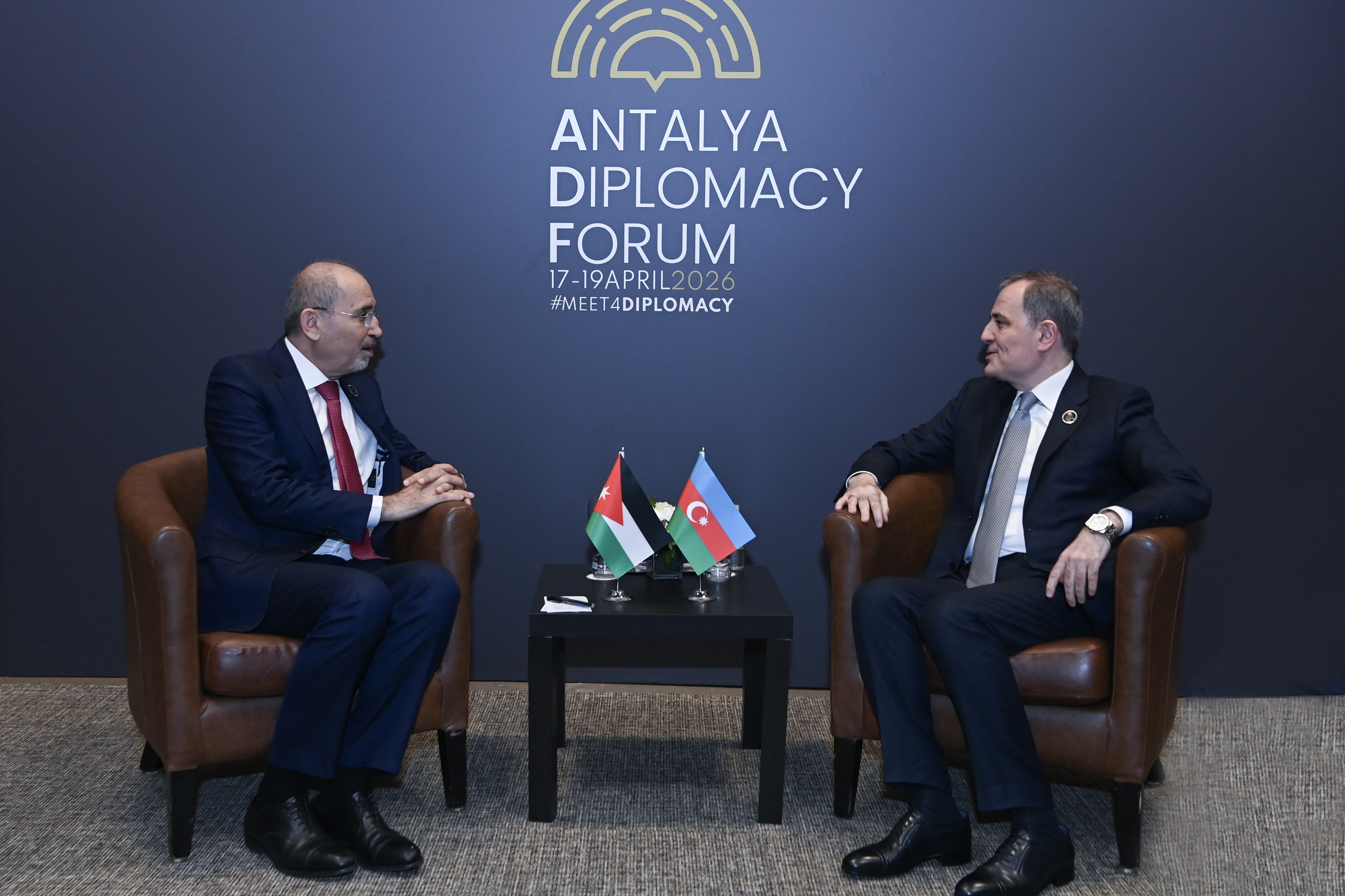 On 18 April, the Minister of Foreign Affairs of the Republic of Azerbaijan Jeyhun Bayramov met with the Deputy Prime Minister, Minister of Foreign Affairs and Expatriates of the Hashemite Kingdom of Jordan Ayman Safadi within the framework of his participation in the Antalya Diplomacy Forum.