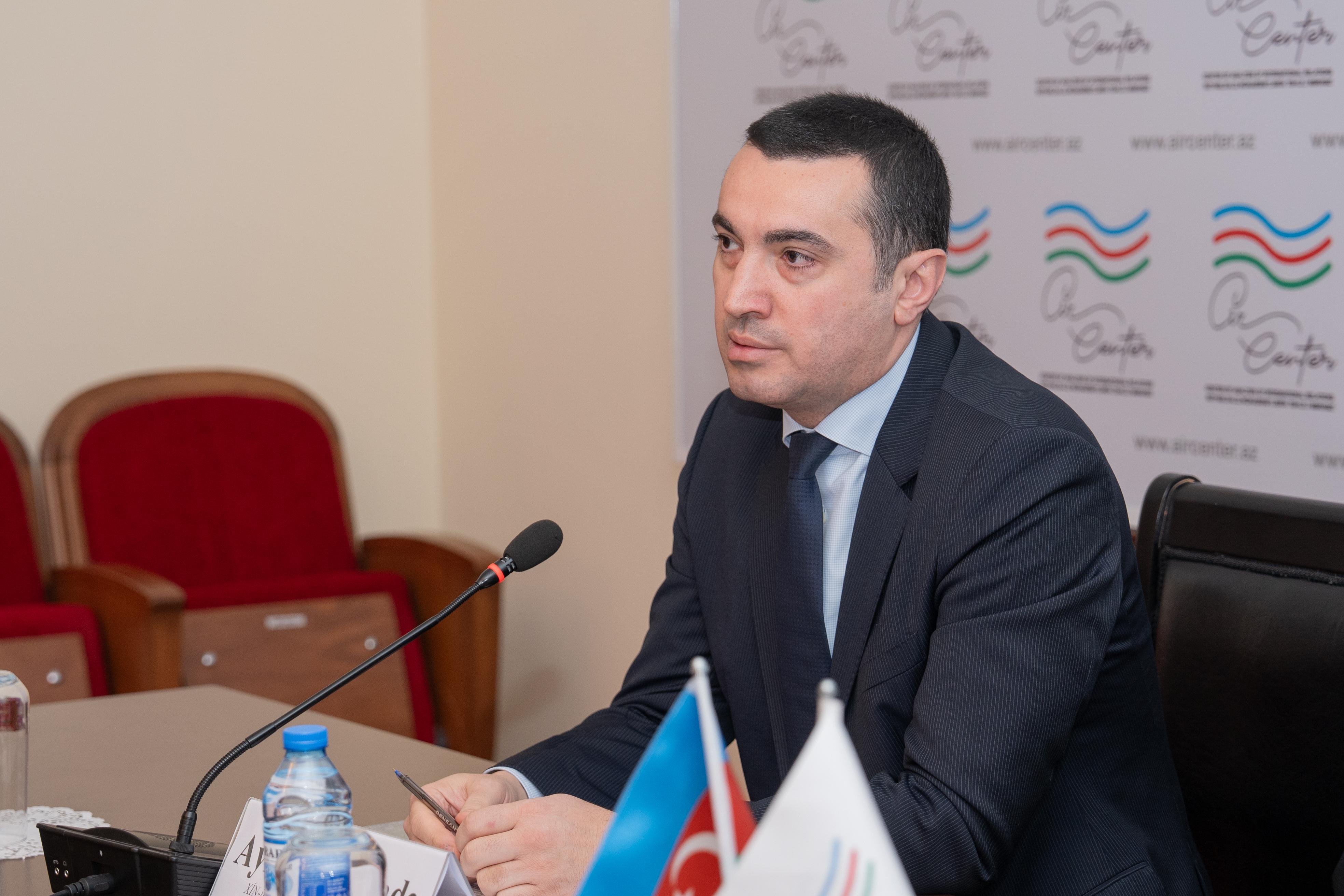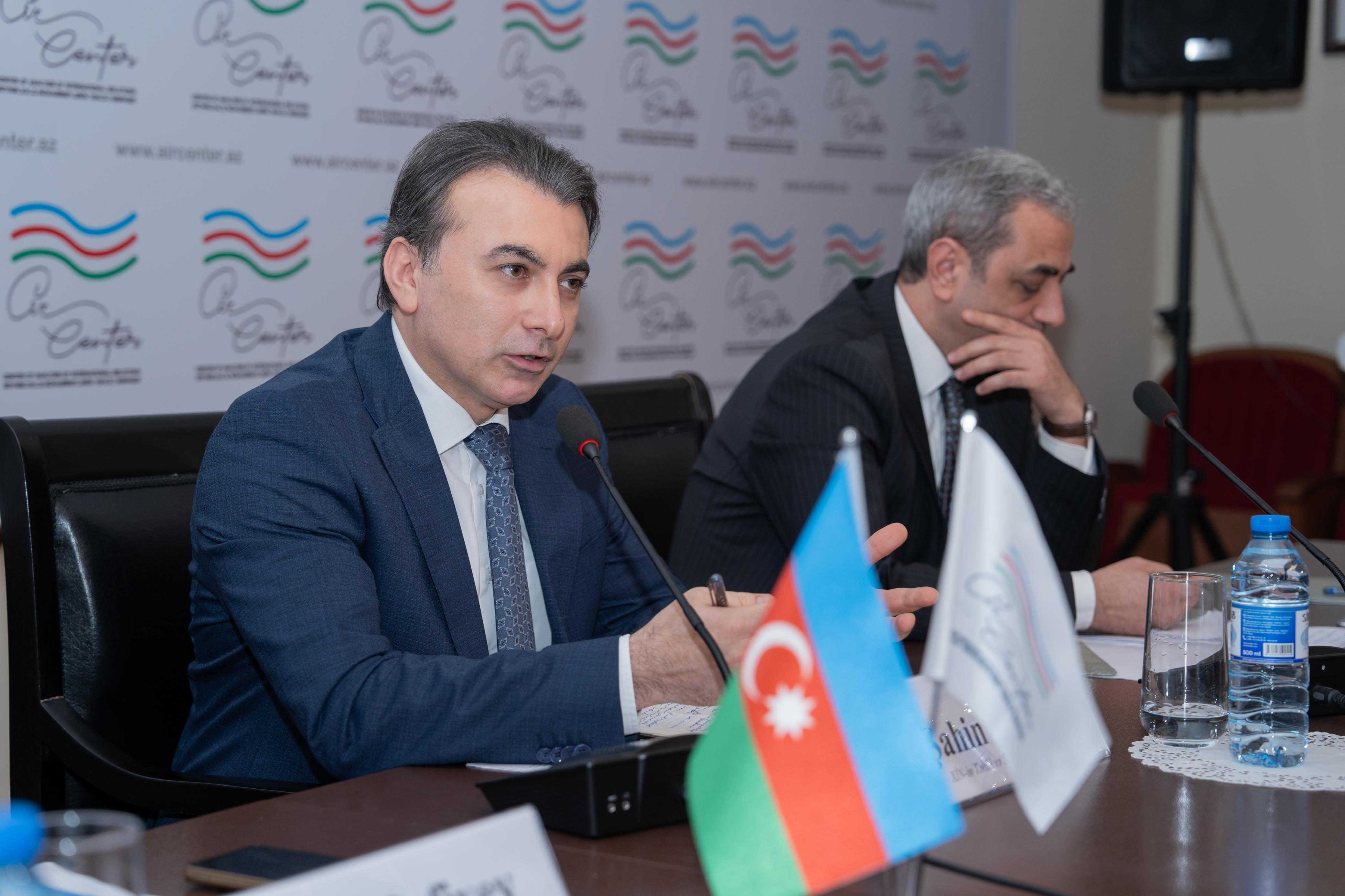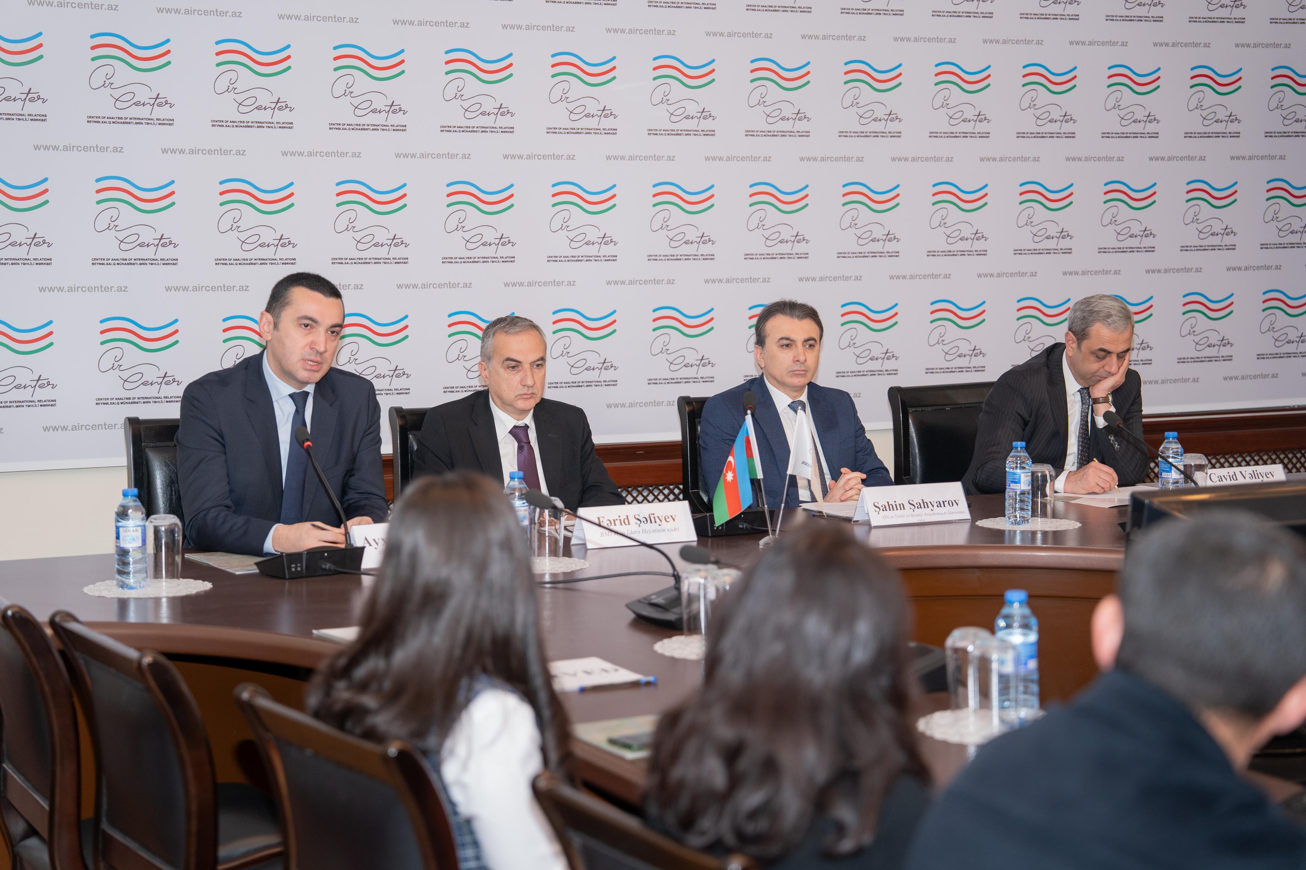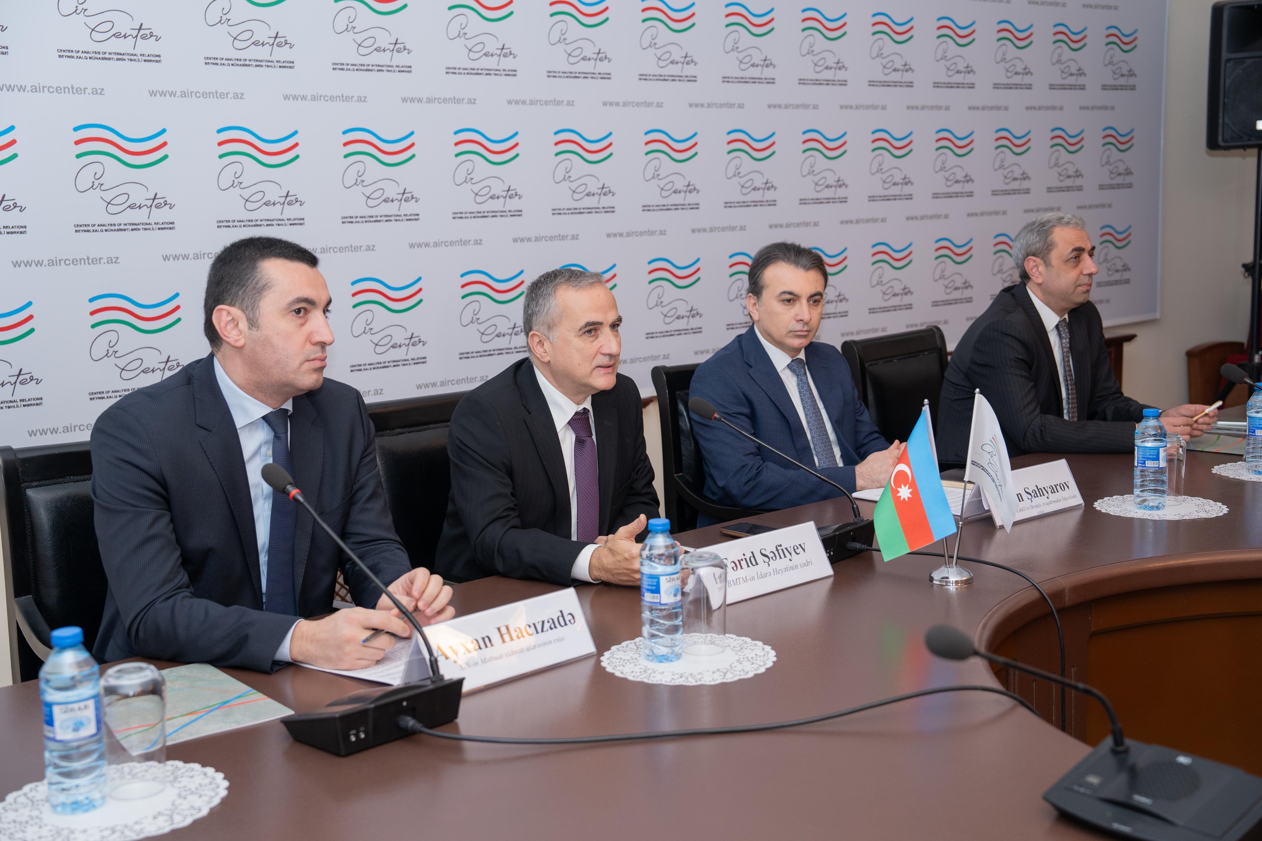 In the second session, Head of Department at the AIR Center Vasif Huseynov delivered a presentation on “A new phase in Azerbaijan–US and Azerbaijan–France relations after the Washington meeting and reassessment of the EU’s role in the South Caucasus”; and Leading Advisor at the AIR Center Sultan Zahidov informed participants on “The Asian dimension in Azerbaijan’s foreign policy: prospects for cooperation within the frameworks of C6, CICA, and other formats.”